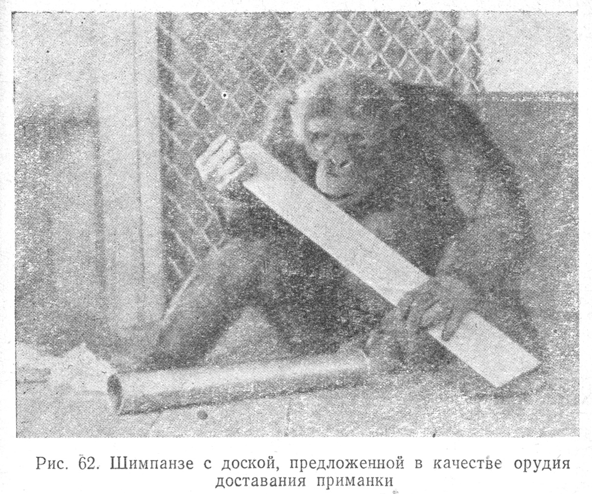 [181] Г. З. Рогинский. Навыки и зачатки интеллектуальных действий у антропоидов (шимпанзе). Изд-во ЛГУ, 1948, стр. 102—240.